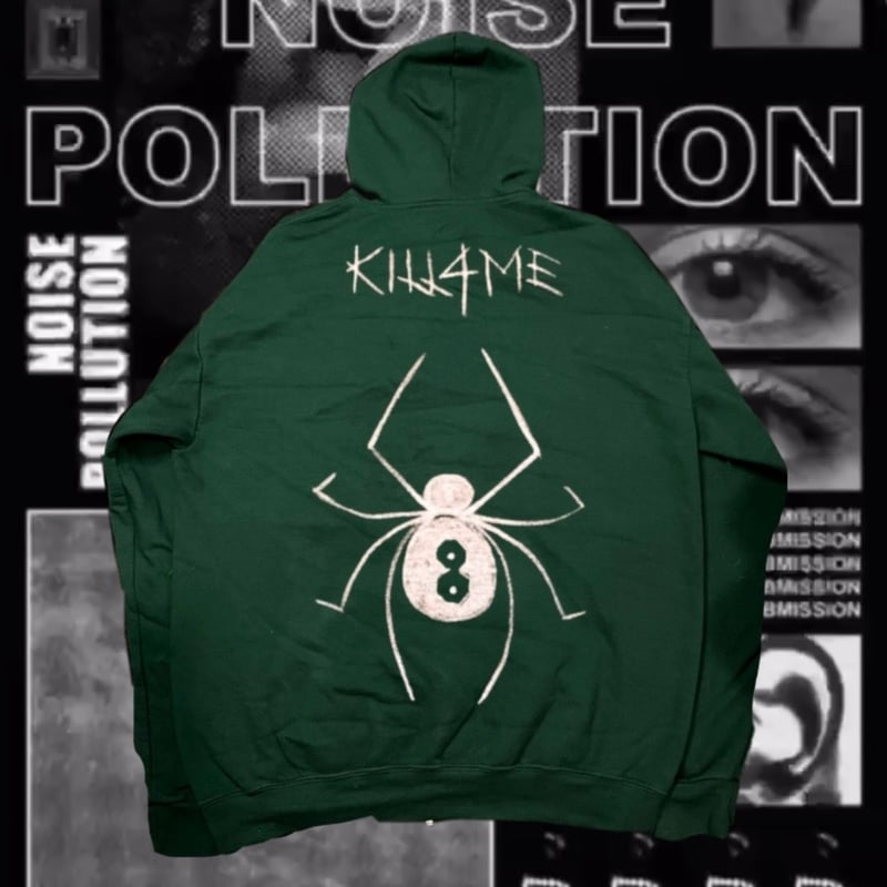This Fairy Angel design was created back in fall 2021. This design has a heart web in the front with a kill4me lucky #8 spider on the back. Each sweater completely is hand painted with bleach. Fairy Angel provides inclusive sizing from Small up to 3XL in mens zip-up.